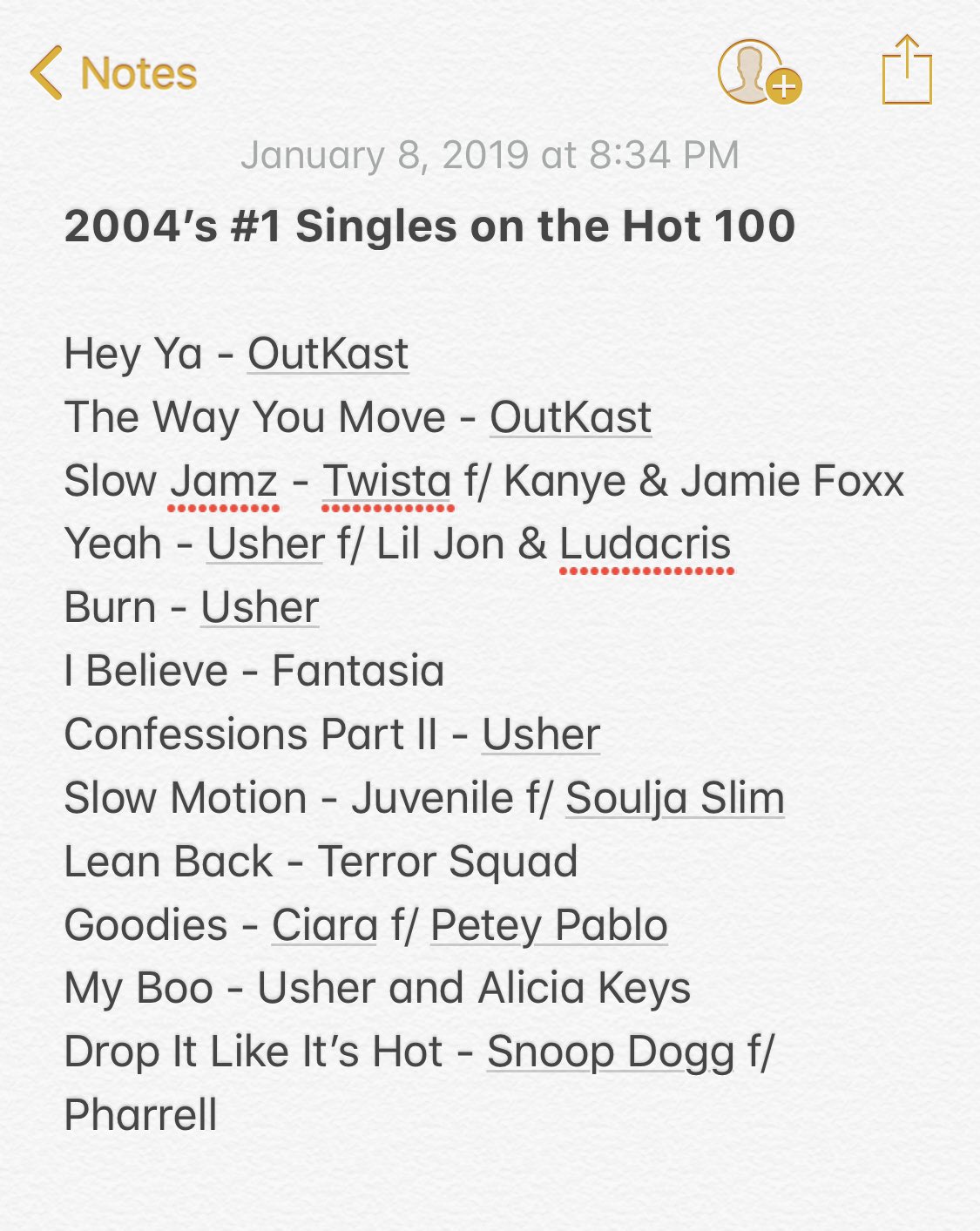 Keithan On Twitter Fun Fact In 2004 All The No 1 Singles On Billboard S Hot 100 Chart Were By Black Artists Groups What A Time Https T Co Rrcyd45pgk Twitter